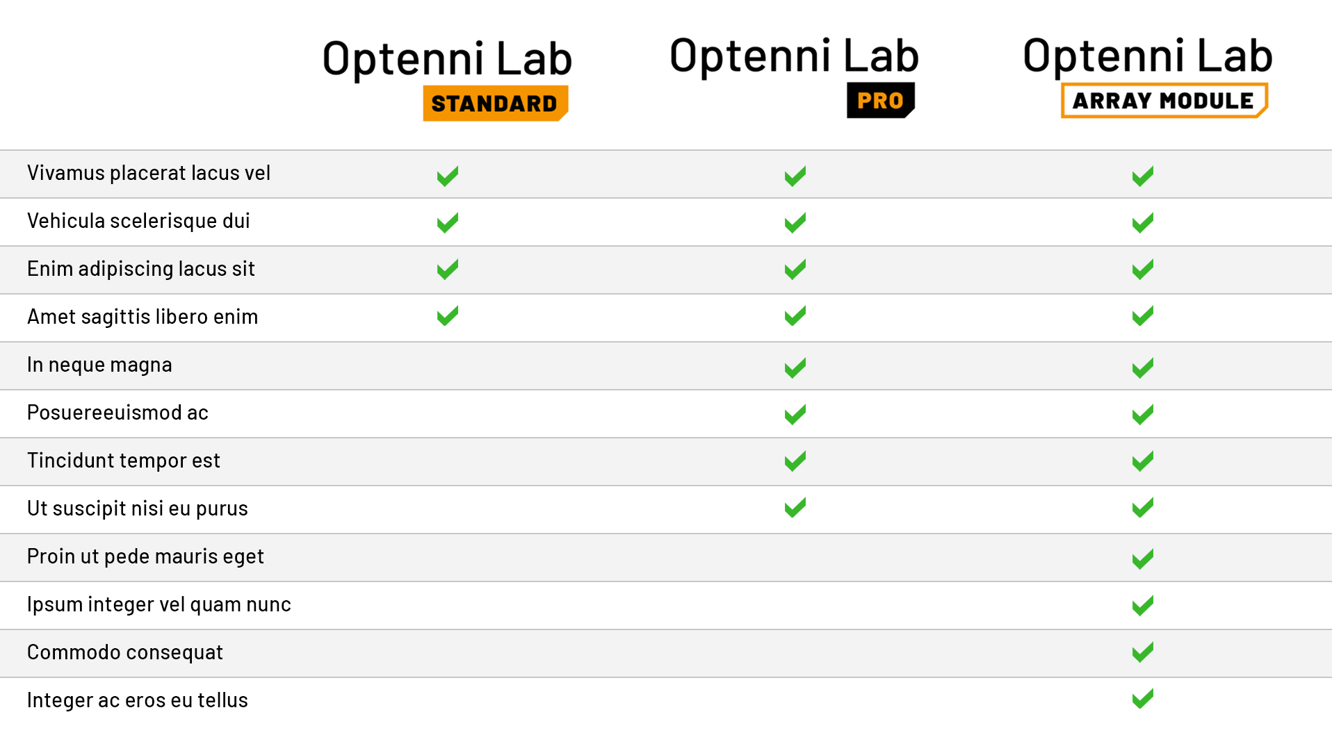 Optenni Lab Features Table